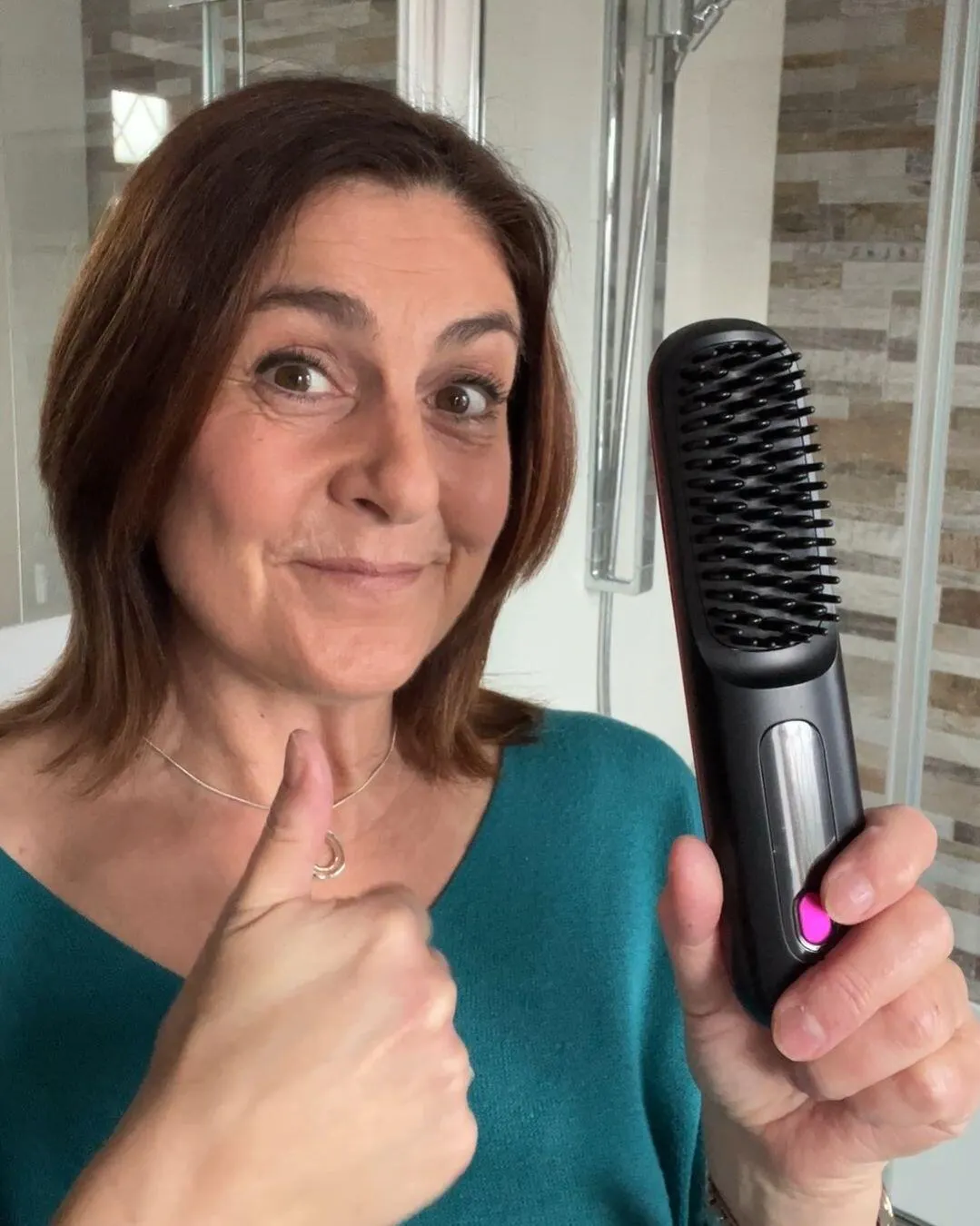 This cordless styling brush fits right in your bag, so you can touch up before meetings, freshen up at the gym, or arrive looking polished no matter where you're coming from.